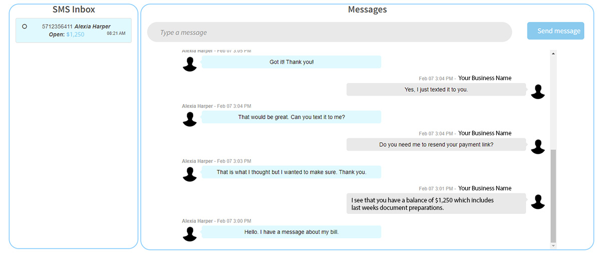 The way we communicate is changing. You receive your own two-way texting number where your clients can start a text conversation from your portal or text you directly from their phone. The result? One less phone call that comes into your business allowing you to multi-task and respond when convenient.